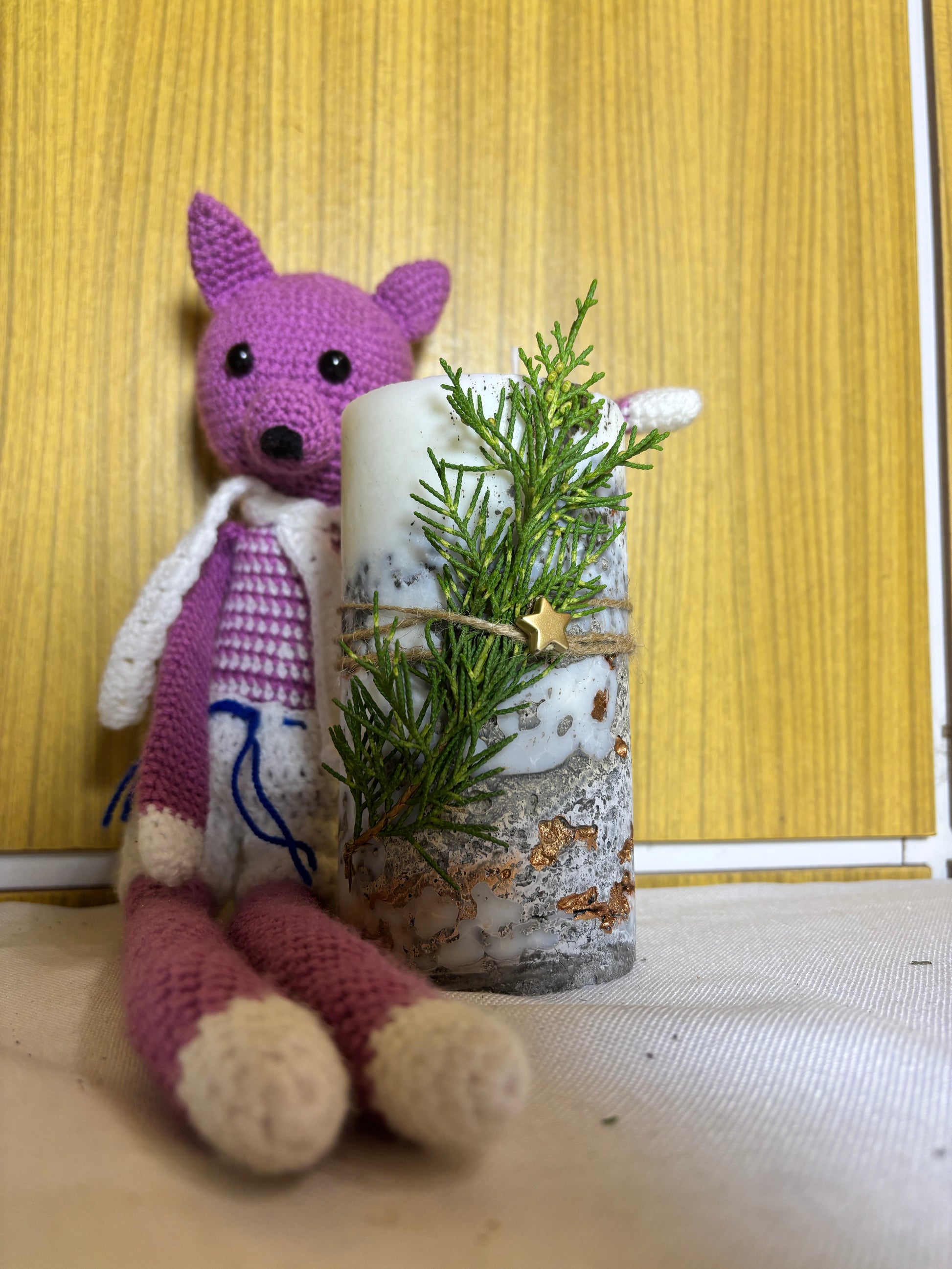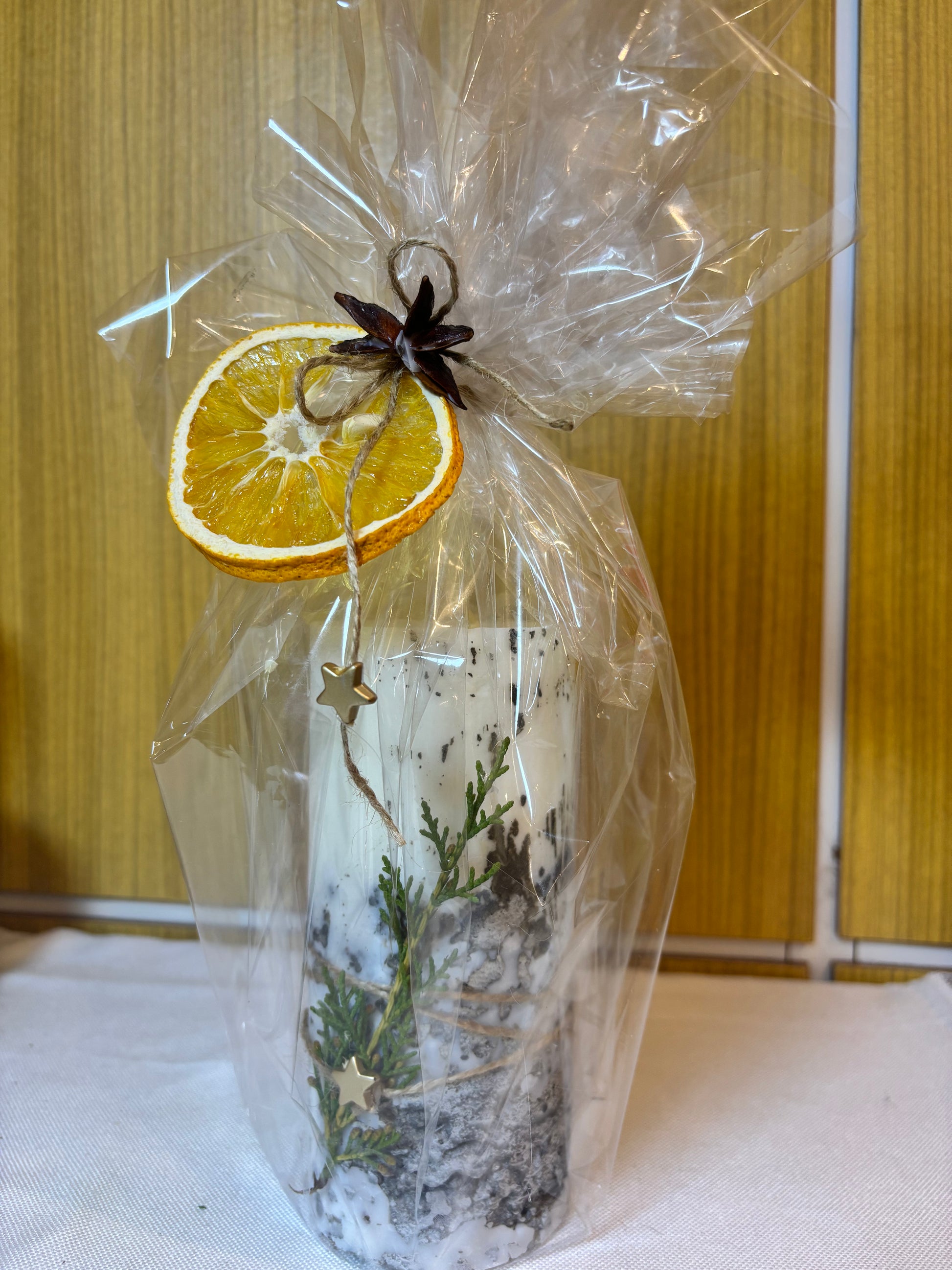 Świeca wykonana z naturalnego wosku, zalana bezpośrednio na solidnej, betonowej podstawie w kształcie tuby. Surowy beton kontrastuje z miękkim, ciepłym światłem płomienia, tworząc efekt, który przyciąga wzrok, ale nie krzyczy – po prostu robi wrażenie.